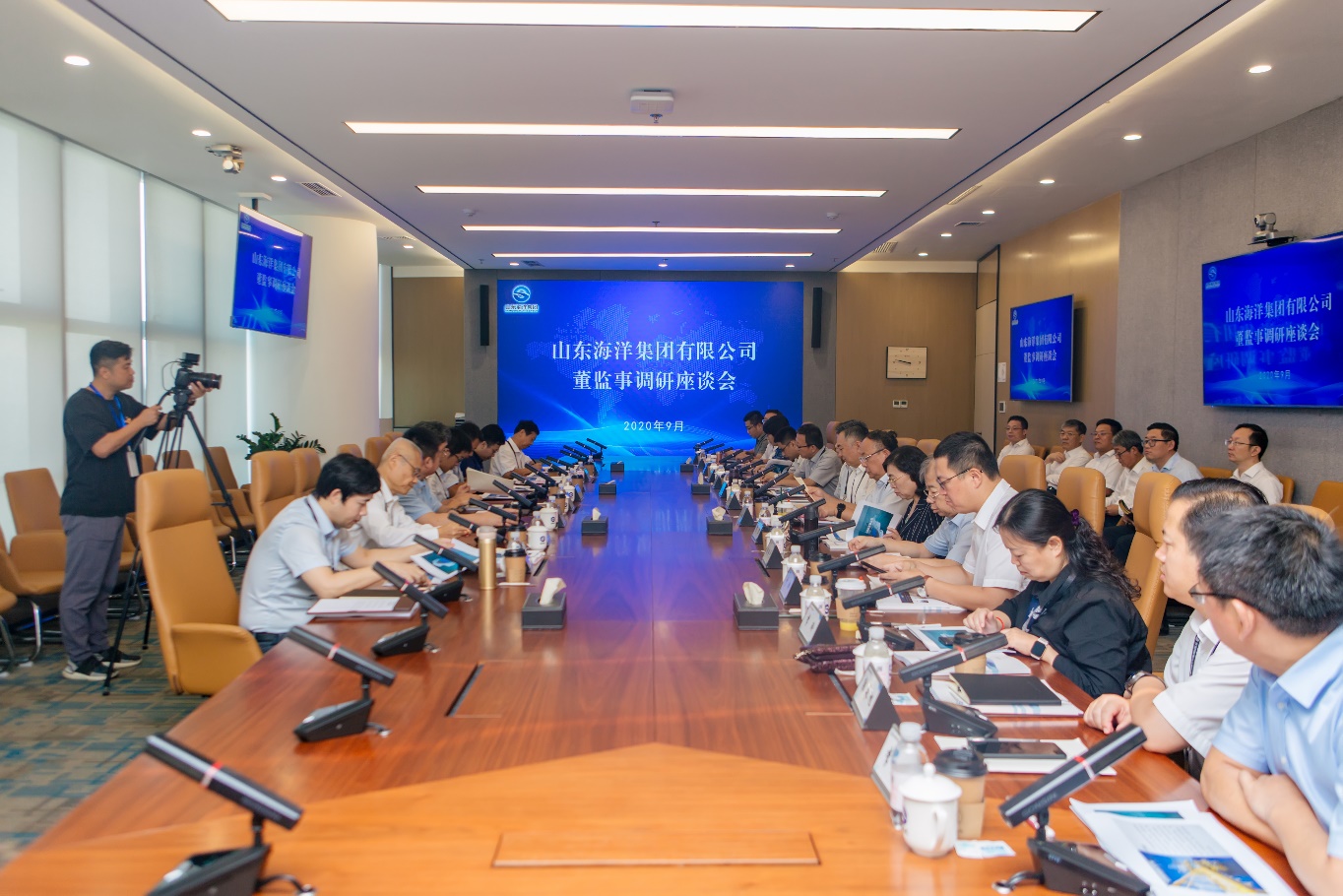 9月9日,海洋集团股东代表及董监事调研组来到青岛国际航运中心调研。参观了楼宇党建阵地、荣誉展厅及办公区域等,就推进集团公司高质量发展进行了座谈交流,韩斌主席作了总结讲话。海洋集团党委书记、董事长包剑英参加。
